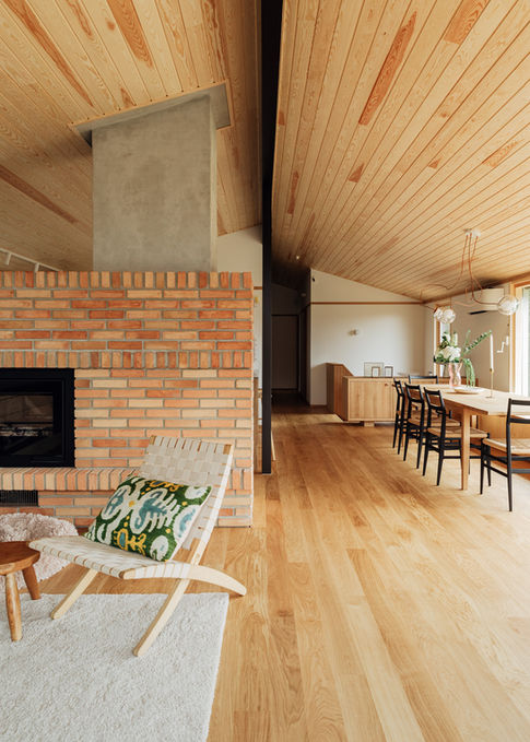 Et 70-tallshus som før ombygging hadde mange tidsriktige elementer (langsmal bygningskropp, en slank limtrekonstruksjon i mønet, glassfelt i gavlen), men som manglet materialkvalitet og behøvde full teknisk overhaling.